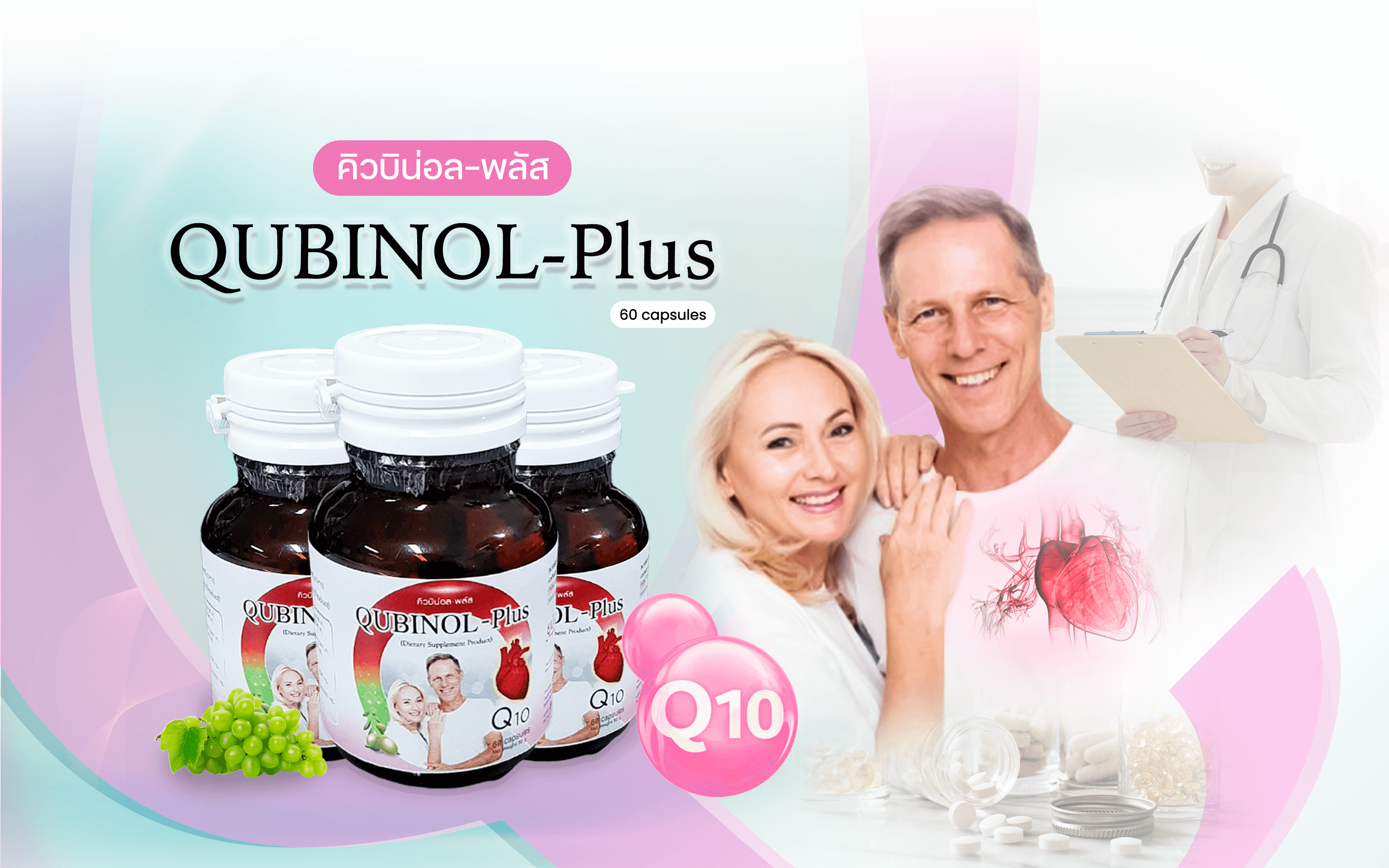 QUBINOL-PLUS คิวบิน่อล-พลัส มีโค-เอนไซน์คิวเทน ในรูปแบบ Ubiquinol (ยูบิควินอล) ร่างกายนำไปใช้งานได้ทันที คนที่มีไขมันในเลือดสูง ช่วยลด LDL, VLDL เสริมการแสดงออกของยีนที่ช่วยลด LDL ในผู้ที่กินยา Statins (ยาลดไขมัน) ที่มีกล้ามเนื้ออ่อนแรง ช่วยสร้างพลังงานของร่างกาย (ATP) เป็น Anti-Oxidant ที่ละลายในไขมันที่ทรงพลังที่สุด